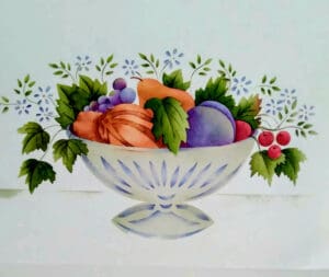 Instructor Peggy Allen will guide participants in a step-by-step process of creating their own 8″x10″ Theorem painting of Fruit Compote in a Glass Bowl. Using layered stencils, brushes, and oil paints on fabric suitable for framing, participants will produce a realistic portrait that appears hand-painted but is achieved through a step-by-step application of layered stenciling. No experience is required, and practice will be provided before doing the actual Theorem. In addition to creating your own Theorem, your presenter will discuss its rich history, composition, and creative process. On display will be a private collection of Theorem paintings from local and regional artists.